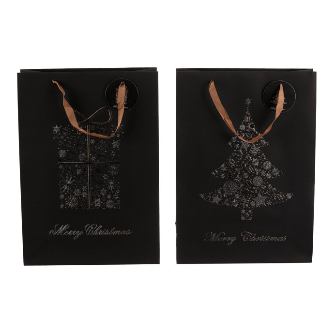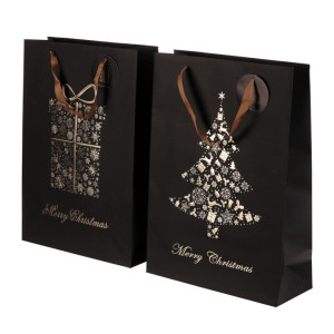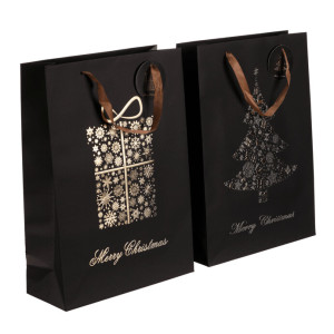 Dotaz na produkt Na splátky ještě dnesDárková papírová taška v elegantní černé barvě se zlatým vzorem je dostupná ve dvou variantách, buď s motivem vánočního stromku, nebo dárku. Díky svému stylovému vzhledu dodá vašim dárků luxusní nádech. Do tašky se dárek snadno vloží, což ušetří čas při balení. Navíc se dobře nosí a vypadá skvěle pod stromečkem.