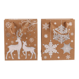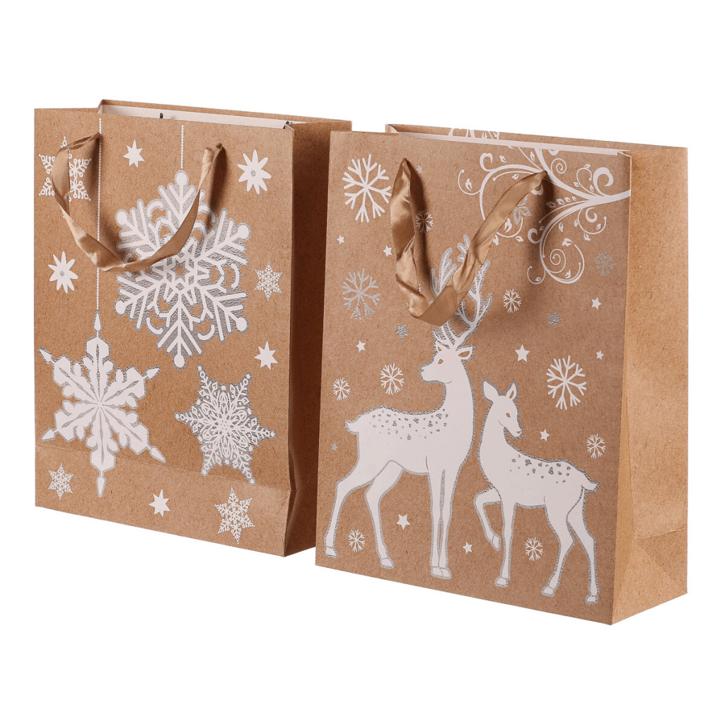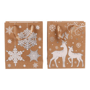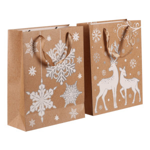 Dotaz na produktVánoční papírové tašky, v tomto případě s motivem bílých sněhových vloček nebo jelenů na světle hnědém pozadí, jsou praktickým a elegantním řešením pro jednoduché, rychlé a efektivní umístění dárků. Už se nemusíte trápit s pracným balením do klasického papíru, ale jednoduše vložíte překvapení do tašky a máte hotovo! Díky svátečnímu vzoru získává váš dárek jedinečný vzhled, který obzvlášť potěší, tím spíše, když pro obdarovaného vyberete ten nejlepší z naší široké nabídky svátečních motivů.