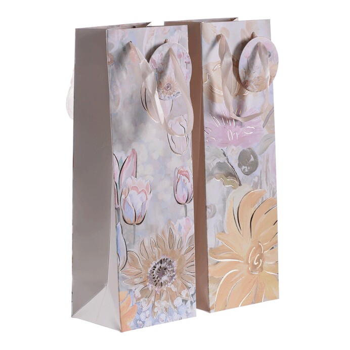 Dotaz na produktNaše dárkové tašky na víno, v tomto případě s květinovými motivy a v mixu dvou druhů, nejenže skvěle vypadají, ale jsou praktické a odolné. Dobře se nosí, jsou pevné a skladné. Vaše překvapení v podobě láhve, zabalené v takto zdobené tašce udělá velkou radost osobě, kterou dobře znáte, a víte, že má tent styl oblíbený. Nabízíme velké množství ruzných druhů tašek, v závislosti na odlišném vzoru, barvě a velikosti, takže si u nás vybere hravě každý, právě podle vkusu své blízké osoby, které chce udělat radost.