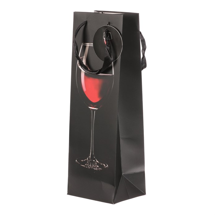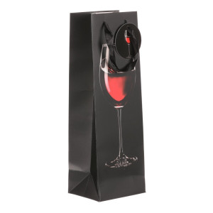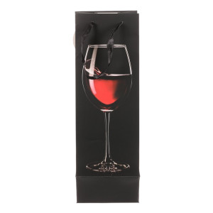 Dotaz na produktČerná dárková taška na víno s motivem sklenky červeného vína je stylovým způsobem, jak zabalit darovanou láhev. Papírová taška je lehká, pohodlná do ruky a snadno se přenáší a předává. Ideální volba pro elegantní a praktické darování láhve vína.