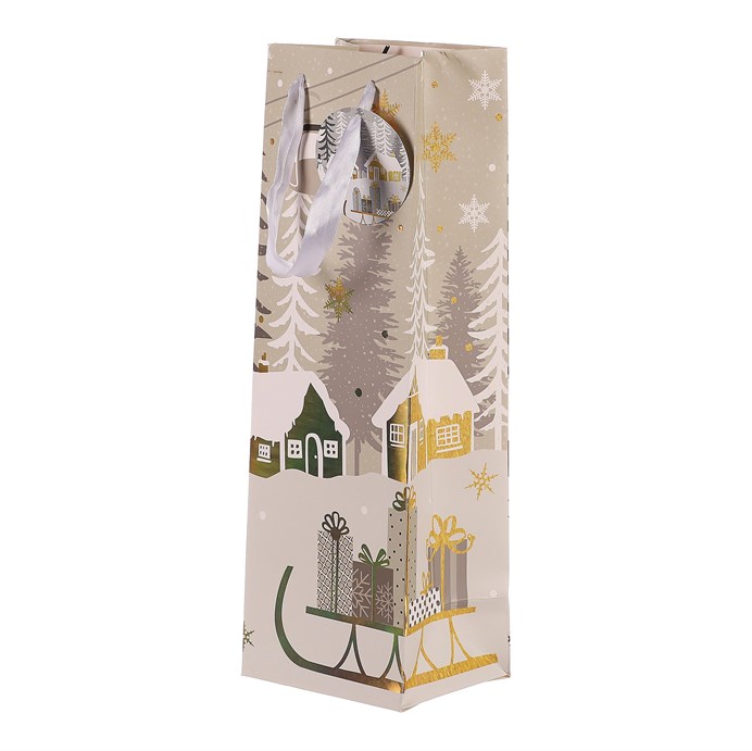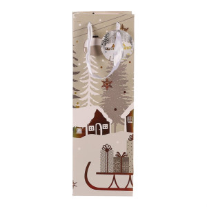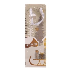 Dotaz na produktVánoční papírové tašky na víno, v tomto případě s motivem zimní krajiny a sáněk s naloženými dárky, jsou praktickým a elegantním řešením pro jednoduché, rychlé a efektivní umístění dárků. Už se nemusíte trápit s pracným balením do klasického papíru, ale jednoduše vložíte překvapení do tašky a máte hotovo! Díky svátečnímu vzoru získává váš dárek jedinečný vzhled, který obzvlášť potěší, tím spíše, když pro obdarovaného vyberete ten nejlepší z naší široké nabídky svátečních motivů.