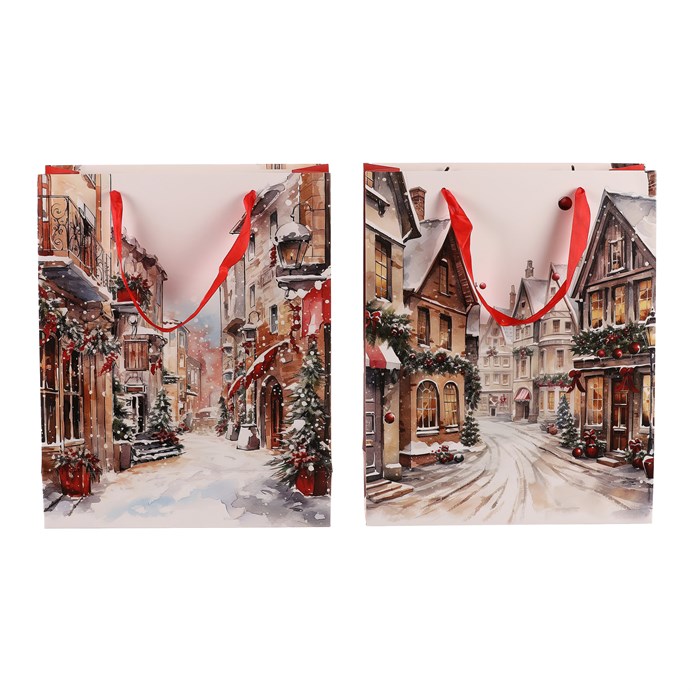 Dotaz na produktVánoční papírové tašky, v tomto případě s motivem zasněžené uličky malebného městečka a v mixu dvou druhů, jsou praktickým a elegantním řešením pro jednoduché, rychlé a efektivní umístění dárků. Už se nemusíte trápit s pracným balením do klasického papíru, ale jednoduše vložíte překvapení do tašky a máte hotovo! Díky svátečnímu vzoru získává váš dárek jedinečný vzhled, který obzvlášť potěší, tím spíše, když pro obdarovaného vyberete ten nejlepší z naší široké nabídky svátečních motivů.