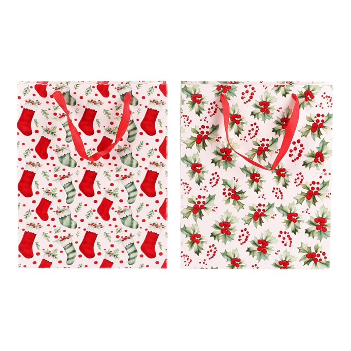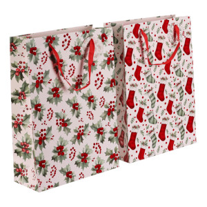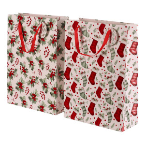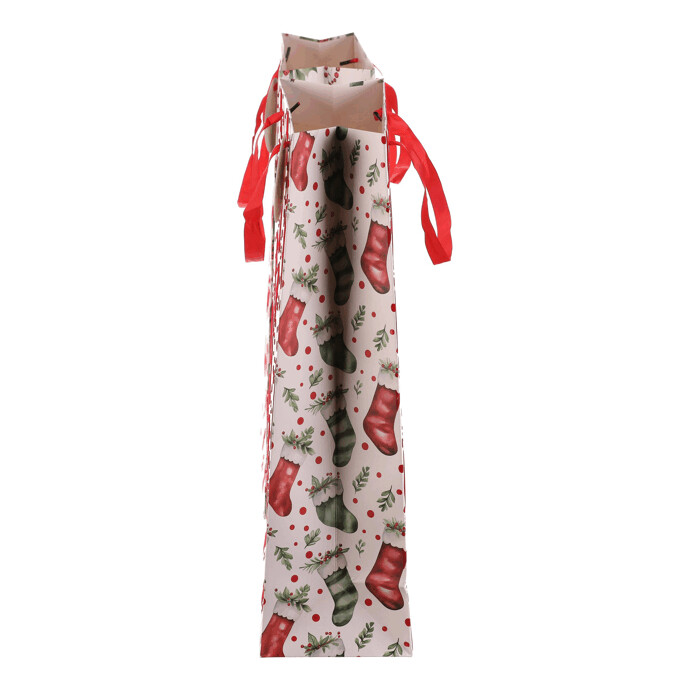Dotaz na produkt Na splátky ještě dnesDárková papírová taška s vánočním motivem je dostupná ve dvou variantách, a to buď s vánočními huňatými ponožkami nebo s větvičkami cesmíny s červenými plody. Obě verze mají elegantní bílý základ, který dodává tašce jemný a sváteční vzhled. Do tašky se dárky snadno balí, ušetříte si tak čas a starosti. Navíc se dobře nosí a pod stromečkem bude vypadat skvěle.