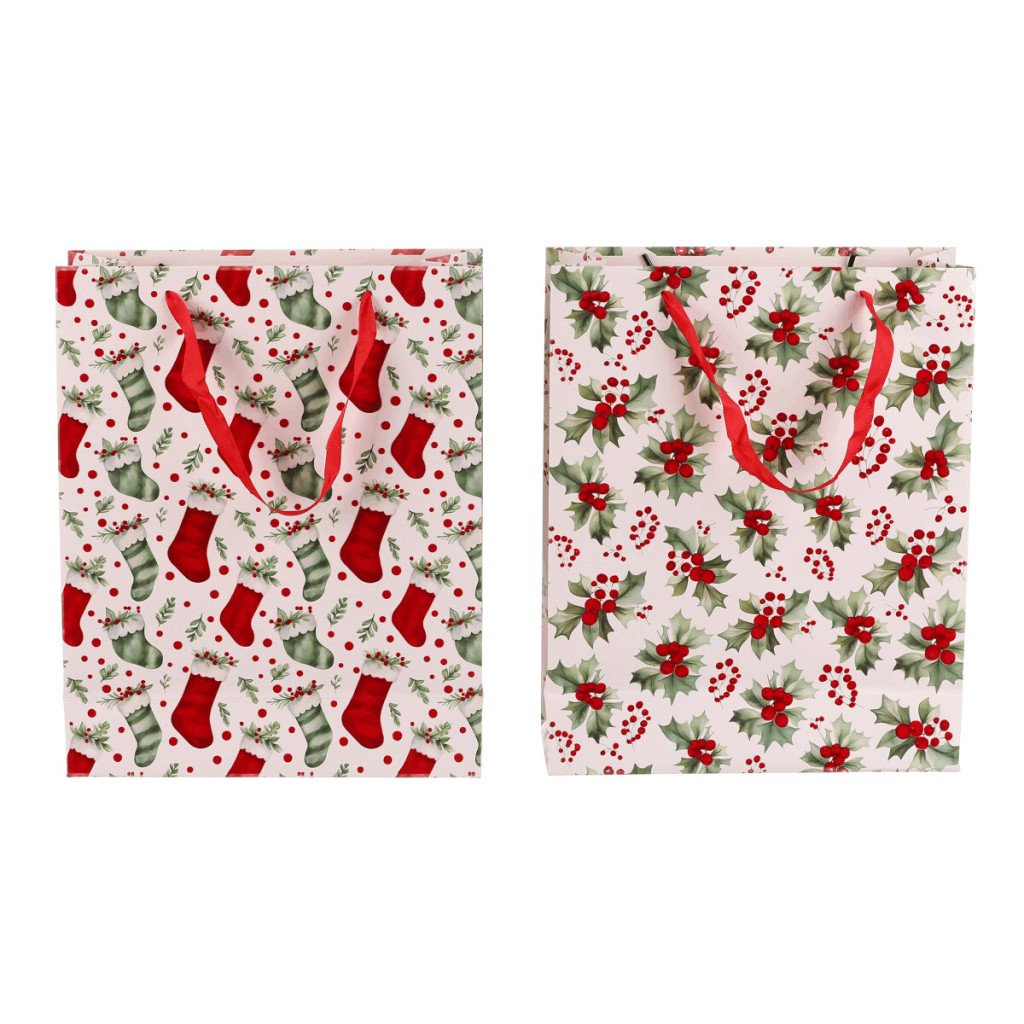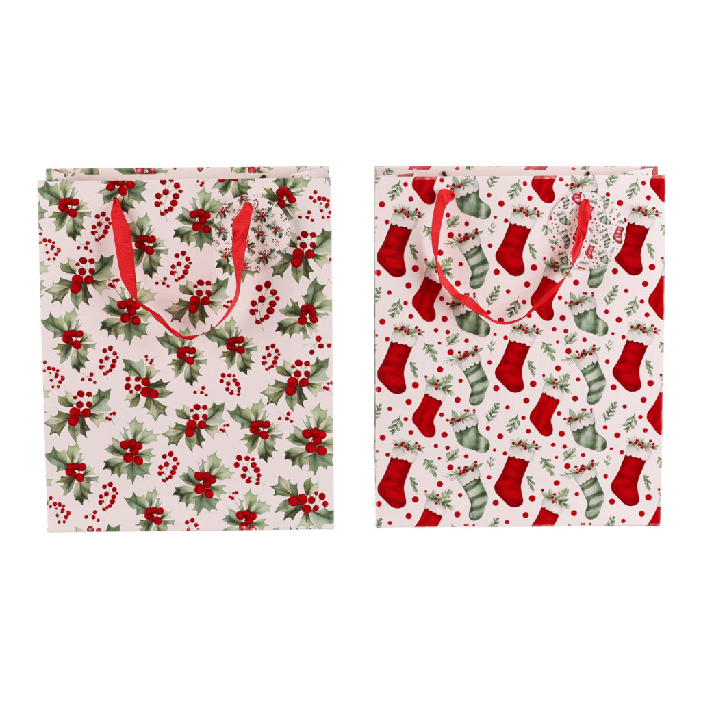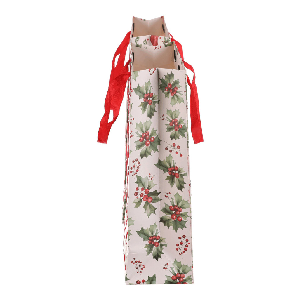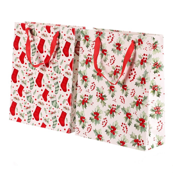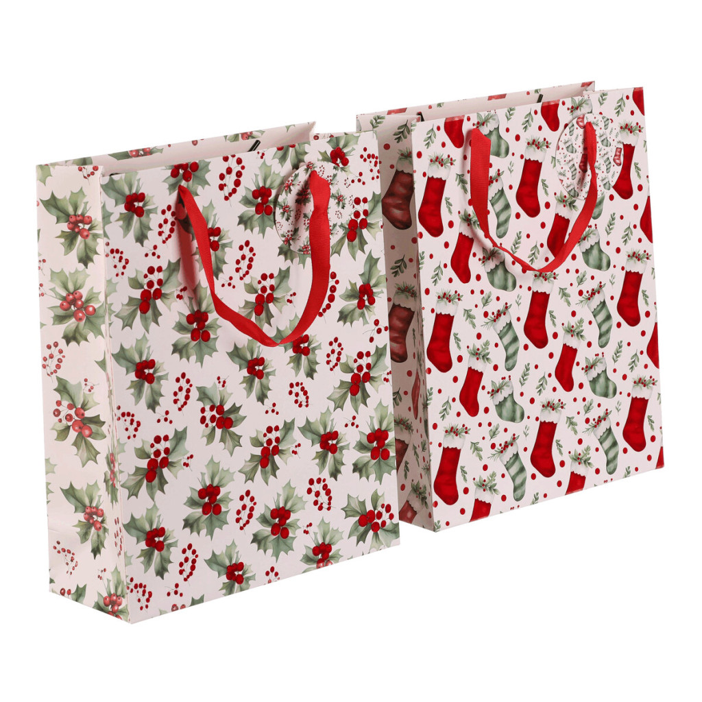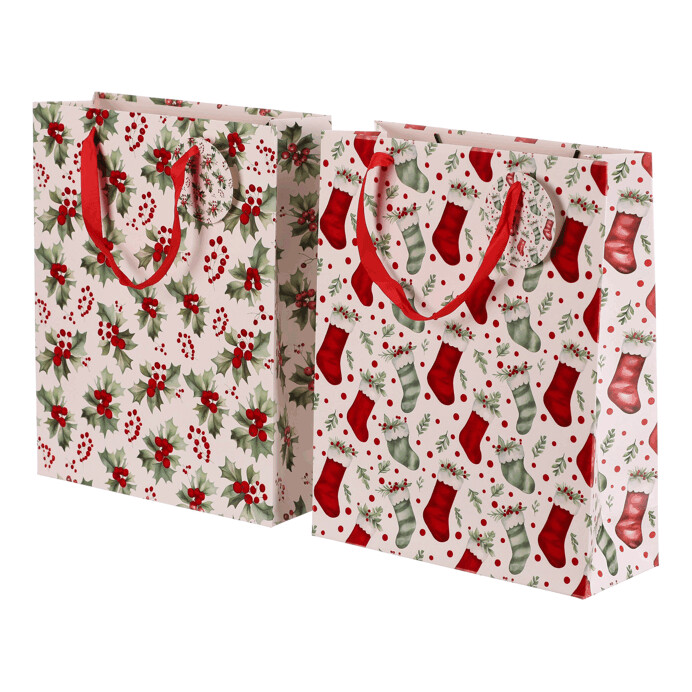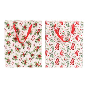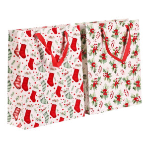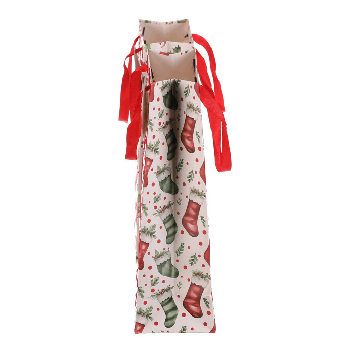 Dotaz na produkt Na splátky ještě dnesDárková papírová taška s vánočním motivem je dostupná ve dvou variantách, a to buď s vánočními huňatými ponožkami nebo s větvičkami cesmíny s červenými plody. Obě verze mají elegantní bílý základ, který dodává tašce jemný a sváteční vzhled. Do tašky se dárky snadno balí, ušetříte si tak čas a starosti. Navíc se dobře nosí a pod stromečkem bude vypadat skvěle.