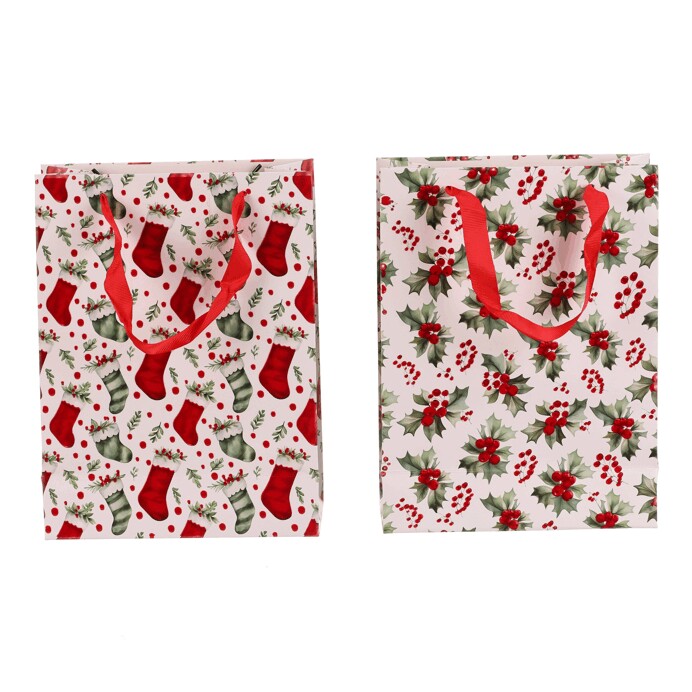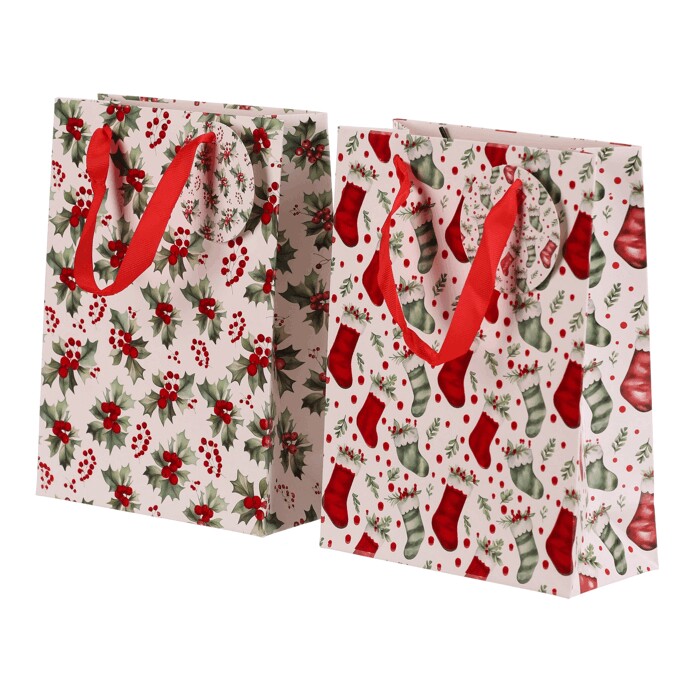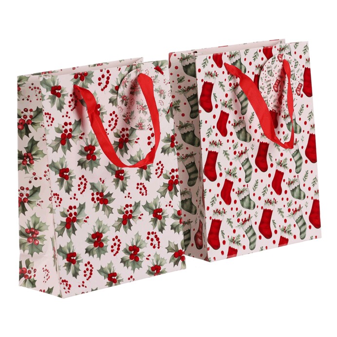 Dotaz na produktDárková papírová taška s vánočním motivem je dostupná ve dvou variantách, a to buď s vánočními huňatými ponožkami nebo s větvičkami cesmíny s červenými plody. Obě verze mají elegantní bílý základ, který dodává tašce jemný a sváteční vzhled. Do tašky se dárky snadno balí, ušetříte si tak čas a starosti. Navíc se dobře nosí a pod stromečkem bude vypadat skvěle.