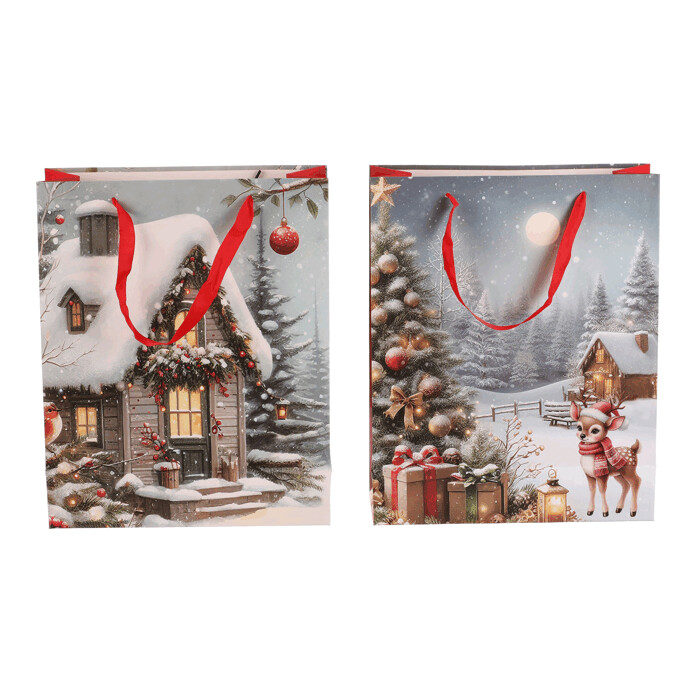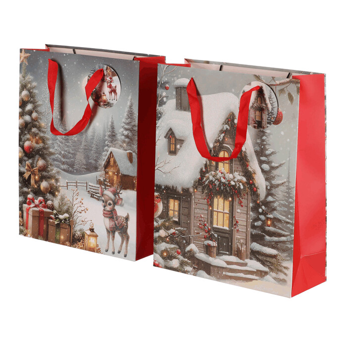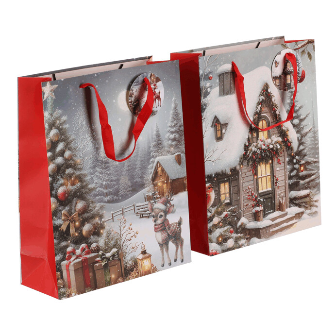 Dotaz na produktDárková papírová taška s nádhernými zimními motivy. Máte na výběr mezi zasněženou chaloupkou nebo vánočním stromkem s dárky a srnečkem. Stylové a praktické řešení, které ušetří čas a dodá vašim dárkům kouzelný vzhled. Už žádné složité a zdlouhavé balení do papíru, stačí vložit a máte hotovo!