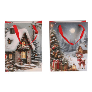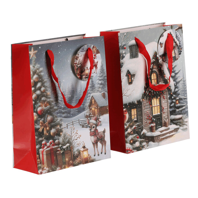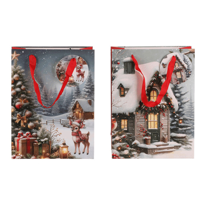 Dotaz na produktDárková papírová taška s nádhernými zimními motivy. Máte na výběr mezi zasněženou chaloupkou nebo vánočním stromkem s dárky a srnečkem. Stylové a praktické řešení, které ušetří čas a dodá vašim dárkům kouzelný vzhled. Už žádné složité a zdlouhavé balení do papíru, stačí vložit a máte hotovo!