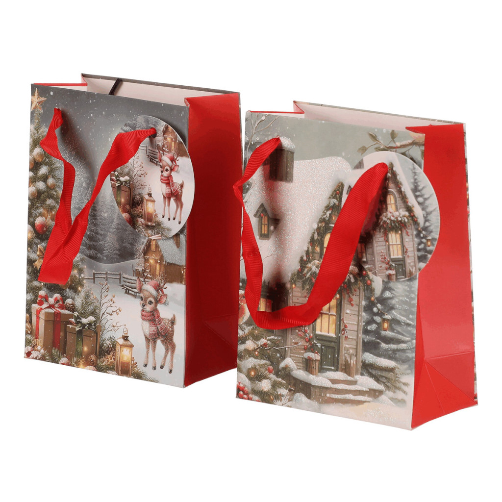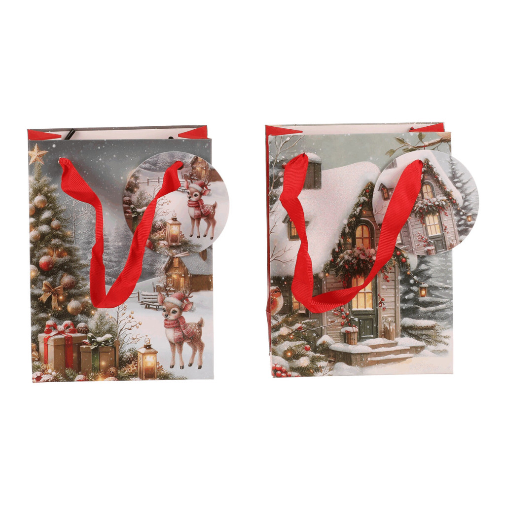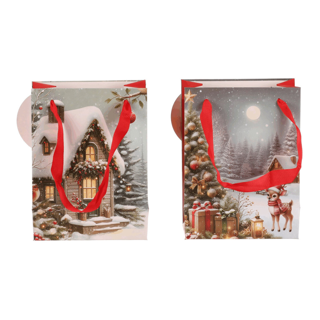 Dotaz na produktDárková papírová taška s nádhernými zimními motivy. Máte na výběr mezi zasněženou chaloupkou nebo vánočním stromkem s dárky a srnečkem. Stylové a praktické řešení, které ušetří čas a dodá vašim dárkům kouzelný vzhled. Už žádné složité a zdlouhavé balení do papíru, stačí vložit a máte hotovo!