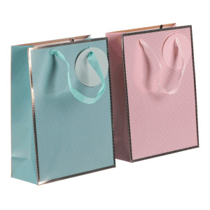 Dotaz na produktDárková papírová taška s elegantním zlatým lemem je dostupná ve dvou barevných variantách, buď v jemné růžové, nebo v decentní zelené. Její stylové provedení dodá vašemu dárku luxusní vzhled. Je pevná, odolná, dobře se nosí a také šetří čas při samotném balení dárečků, neb je stačí vložit dovnitř a máte hotovo.