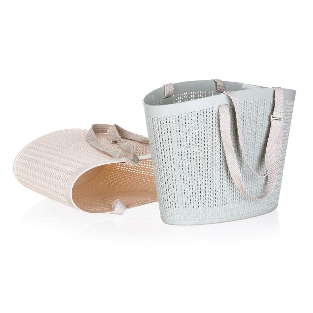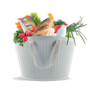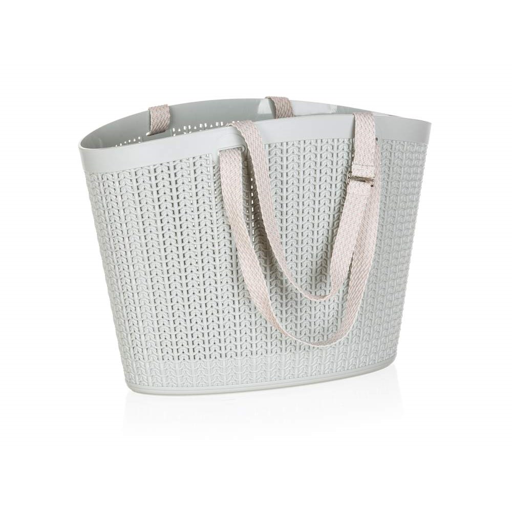 Dotaz na produktNákupní a pikniková plastová taška v ratanovém provedení a šedé barvě. Taška je velmi odolná a rozměrná - rozměry 42 x 23 x 30 cm, ucha z odolného a pevného polyesteru. Objem tašky 16 l, maximální nosnost 50 kg.