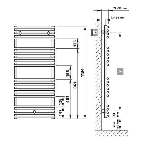 Těleso otopné CosmoStandard 1134/500mm, 568W, středové připojení (bez armatury), žebříkové, s úchyty, RAL9016