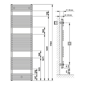 Těleso otopné CosmoStandard 1764/900mm, 1462W, středové připojení (bez armatury), žebříkové, s úchyty, RAL9016