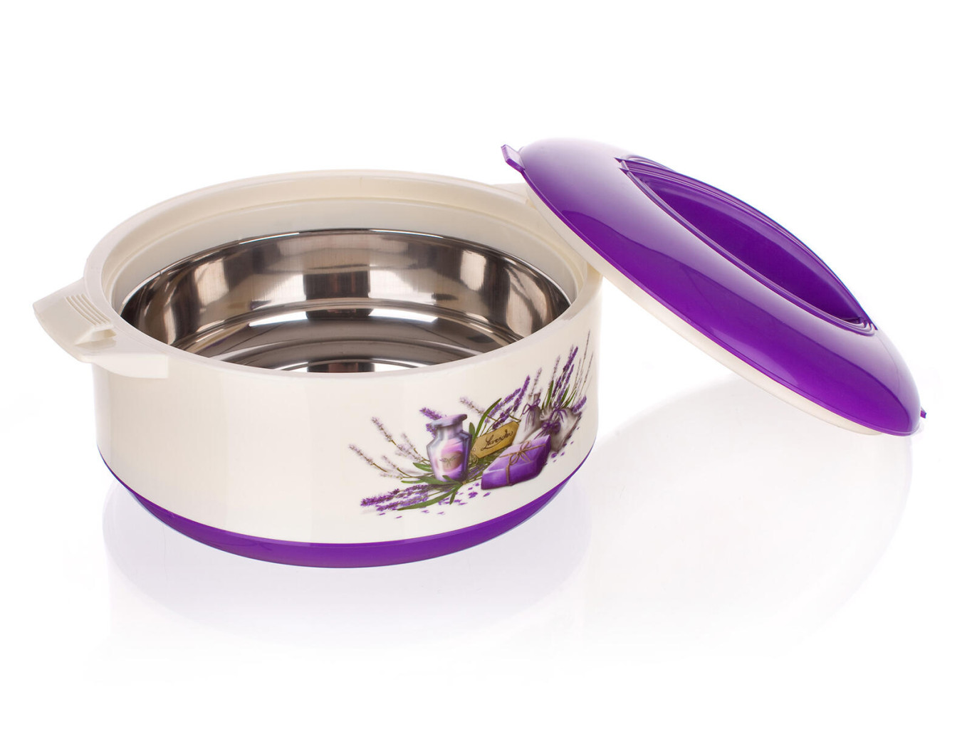 Termomísa LAVENDER s poklicí, je praktický pomocník vhodný pro uchovávání a přenášení horkých i studených pokrmů.