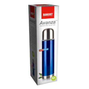 Nerezová termoska AVANZA Blue ve dvouplášťovém provedení, je vhodná pro horké a studené nápoje.