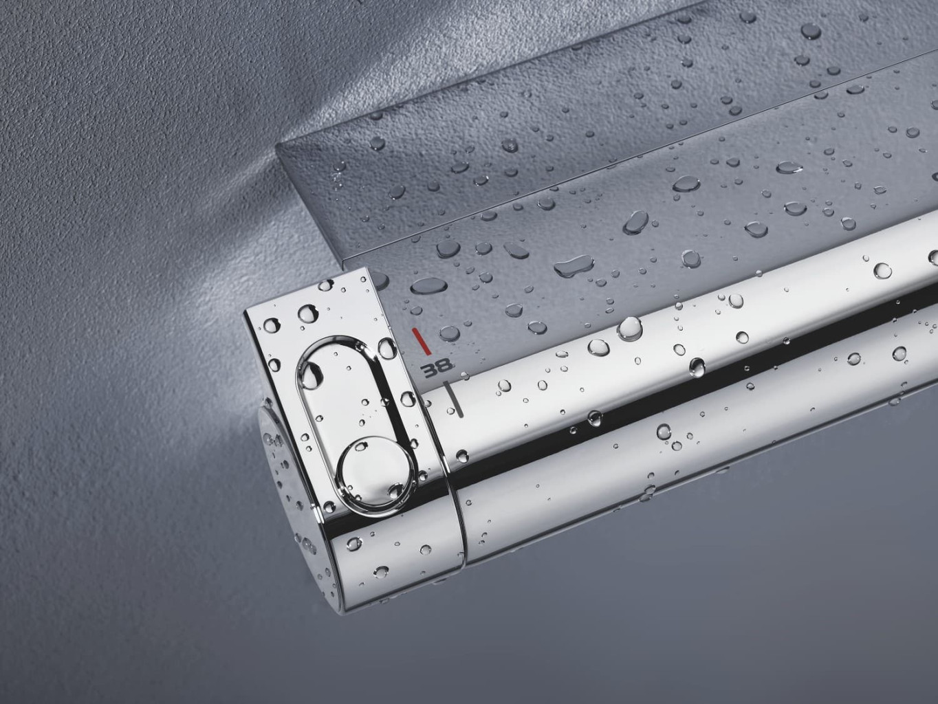 Dotaz na produkt Na splátky ještě dnesŠpičkový výkon, na který se můžete spolehnout, v uživatelsky přívětivé podobě. Úsporná termostatická baterie GROHE Grohtherm 2000 Cosmopolitan umožňuje vychutnat si luxusní sprchu s doposud nevídanou lehkostí. Povrch této pohodlné termostatická baterie s technologií GROHE CoolTouch se navíc nikdy příliš nezahřeje a je tak vždy bezpečné se ho dotýkat. Díky technologii GROHE TurboStat se můžete těšit na vodu s konstantní teplotou bez náhlých teplotních výkyvů způsobených změnami tlaku ve vodovodní přípojce. Součástí jsou rovněž ergonomické rukojeti Aqua Paddles pro snadnou manipulaci a praktická úložná přihrádka. V rámci spolehlivosti a mimořádného komfortu používání obsahuje tato sprchová termostatická baterie tlačítko GROHE SafeStop nastavené na 38 °C, které zabraňuje dětem zvýšit teplotu vody nad tuto úroveň. Integrovaná úsporná technologie GROHE EcoJoy snižuje spotřebu vody až o 50 % prostřednictvím speciálního tlačítka. Snížíte tak zátěž na životní prostředí i svou peněženku. Veškeré součásti jsou pokryty zářivým chromovým povrchem GROHE StarLight a obsahují flexibilní silikonové trysky, které zabraňují usazování vodního kamene a umožňují snadné čištění.