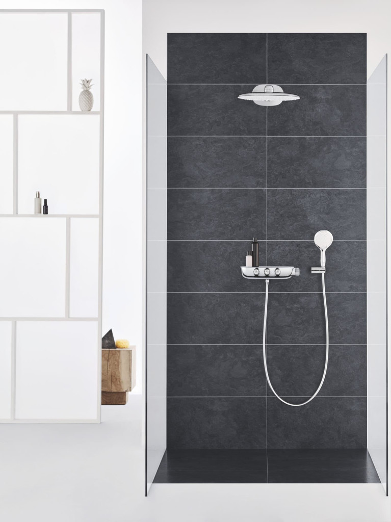 Dotaz na produkt Na splátky ještě dnesHledáte sofistikovaný sprchový systém, který vám nabídne maximální komfort ve stylovém provedení? Tohle je způsob, jakým se chcete sprchovat: Inovativní technologie SmartControl vám umožní přepínat mezi hlavovou a ruční sprchou a jejich jednotlivými režimy proudu a regulovat objem vody a její teplotu pomocí otočných tlačítek. Hlavová i ruční sprcha nabízejí výběr ze dvou režimů proudu. Hlavová sprcha XXLS se stylově bílým sprchovým diskem vás obklopí vodou, zatímco režim proudu GROHE TrioMassage, který je relaxační i energický současně, posune váš zážitek ze sprchování na zcela novou úroveň. Technologie GROHE TurboStat zabraňuje nepříjemným výkyvům v teplotě vody pro dokonalý komfort a bezpečnost. Pojistka GROHE SafeStop chrání vaši pokožku před popálením, zatímco díky technologii GROHE CoolTouch nebude termostatická baterie nikdy příliš horká k dotyku. Úsporná technologie GROHE EcoJoy je ztělesněním našeho závazku vůči životnímu prostředí. Tento systém disponuje vysoce sofistikovaným designem, avšak současně obsahuje mnoho praktických funkcí. GROHE Rainshower SmartControl – ukázková dokonalost sprchování s německou kvalitou. Mějte prosím na paměti, že tento set je možné zapojit pouze v kombinaci s montážní sadou GROHE Rainshower 360 (26264001) a podomítkovým tělesem GROHE Grohtherm SmartControl Concealed (26449000). * U ruční sprchy lze jako druhý režim proudu zvolit GROHE Rain O2 nebo PureRain během instalace (tovární nastavení: GROHE PureRain).