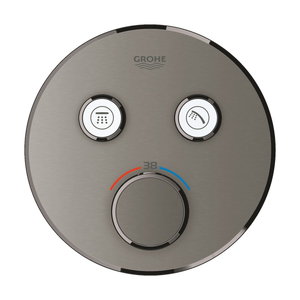 Termostatická sprchová baterie Grohtherm SmartControl pro podomítkovou instalaci, 2 ventily. Zaoblené tvary, matně grafitová povrchová úprava, vyrobeno v Německu společností GROHE. Ekologický provoz a bezpečnostní technologie