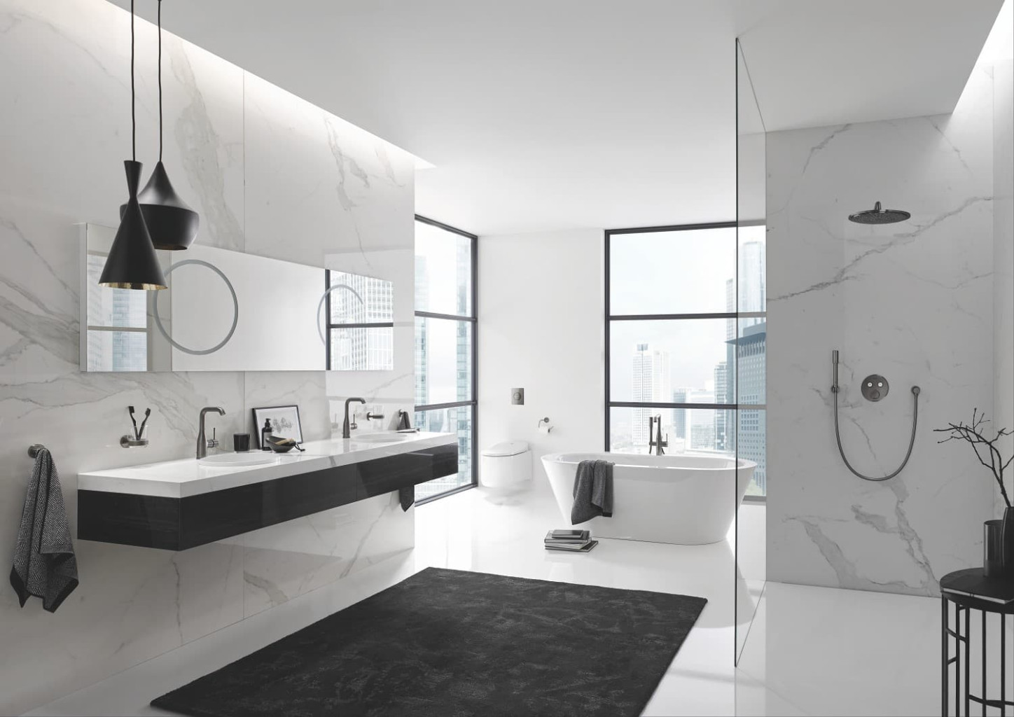 Dotaz na produkt Na splátky ještě dnesPozvedněte svou sprchu na zcela novou úroveň prostřednictvím termostatické baterie Grohtherm SmartControl v provedení Brushed Hard Graphite určené k podomítkové instalaci. Umožní vám převzít naprostou kontrolu nad sprchovým zážitkem vašich snů. Inovativní technologie SmartControl vám umožní přepínat mezi požadovanými zdroji proudu a regulovat objem vody a její teplotu pomocí otočných tlačítek. Dva ventily znamenají, že můžete snadno přepínat, nebo kombinovat, hlavovou a ruční sprchu, případě sprchu a vanovou výpusť. Integrovaná technologie GROHE TurboStat zabraňuje nepříjemným teplotním výkyvům. Značení GROHE EasyLogic a vroubkovaná tlačítka s vyměnitelnými symboly činí ovládání mimořádně intuitivním. Bezpečnostní pojistka GROHE SafeStop zabraňuje nastavení teploty vyšší než 38 °C, aby nebylo možné se popálit, zatímco volitelná pojistka GROHE SafeStop Plus dále zabraňuje nastavení vyšší teploty než 43 °C, což je přidaná úroveň zabezpečení. Baterie je tak dokonale vhodná do rodinných koupelen. Úsporná technologie GROHE EcoJoy vám nabídne snížený průtok vody bez jakéhokoliv kompromisu ve výkonu a požitku. Systém GROHE QuickFix zajišťuje jednoznačnou a bezproblémovou montáž této prémiové baterie. Štíhlá konstrukce zásadně usnadňuje čistění baterie, zatímco blyštivý, odolný chromový povrch GROHE StarLight zajišťuje dokonalý vzhled po celou dlouhou dobu životnosti. Tato baterie jednoznačně pozvedne úroveň vaší koupelny, a to nejen díky svému minimalistickému designu plného elegantně zaoblených tvarů. Mějte prosím na paměti, že tuto baterii je možné zapojit pouze v kombinaci s podomítkovým tělesem GROHE Rapido SmartBox (35600000).