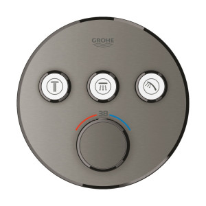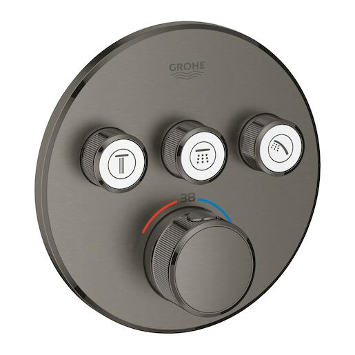 Termostatická sprchová nebo vanová baterie Grohtherm SmartControl pro podomítkovou instalaci, 3 ventily. Zaoblené tvary, matně grafitová povrchová úprava, vyrobeno v Německu společností GROHE. Ekologický provoz a bezpečnostní technologie