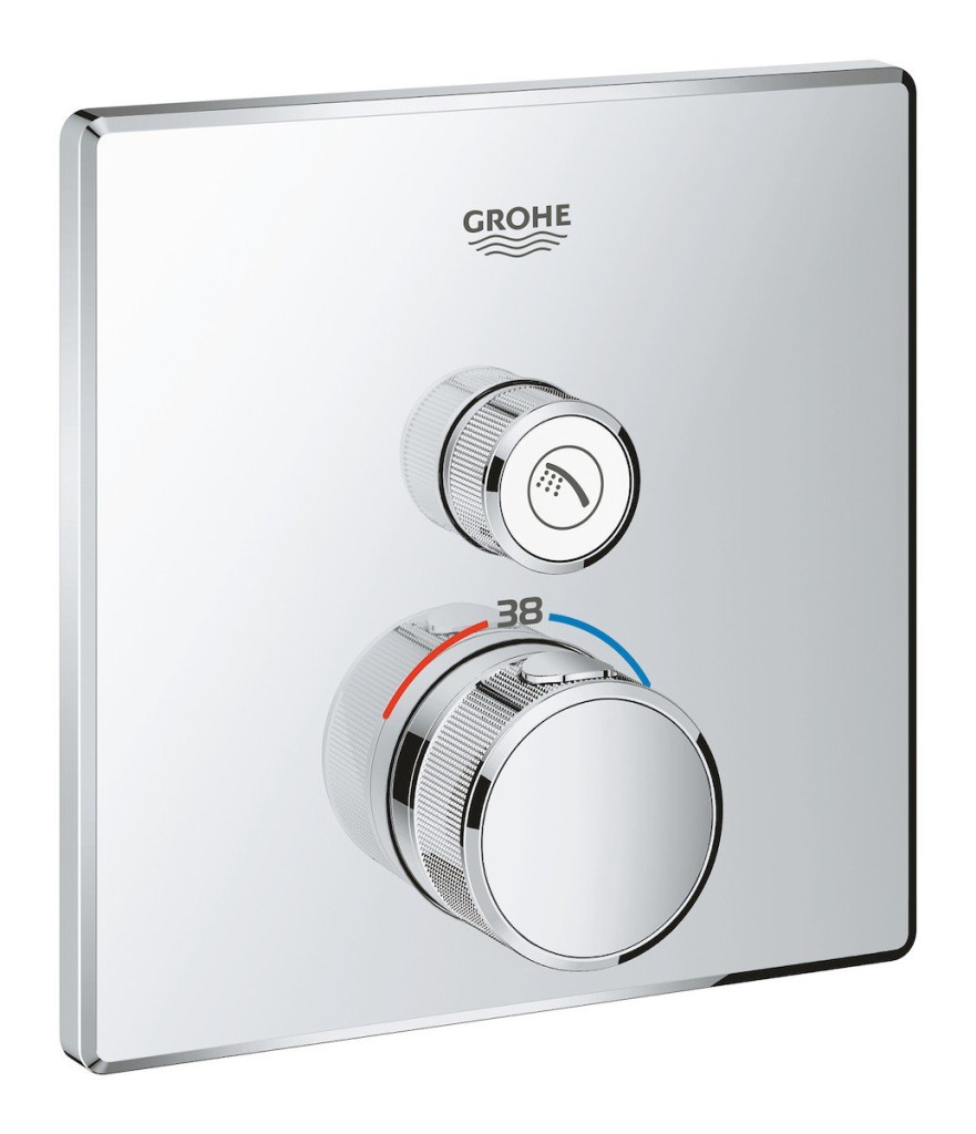 Termostatická sprchová baterie Grohtherm SmartControl pro podomítkovou instalaci, 1 ventil Čtvercový tvar, chromová povrchová úprava, vyrobeno v Německu společností GROHE. Ekologický provoz a bezpečnostní technologie