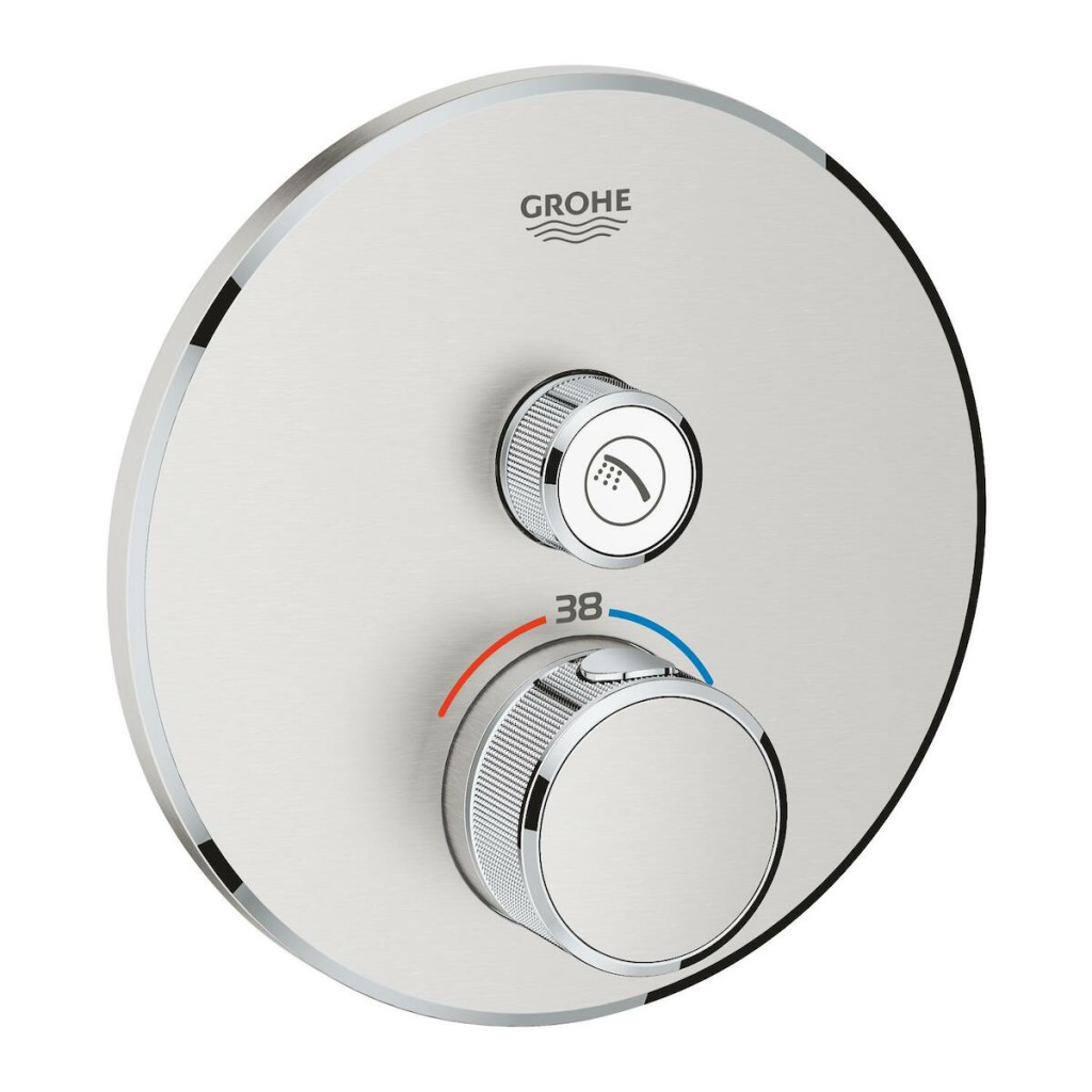 Termostatická sprchová baterie Grohtherm SmartControl pro podomítkovou instalaci, 1 ventil Zaoblené tvary, povrchová úprava z nerezové oceli, vyrobeno v Německu společností GROHE. Ekologický provoz a bezpečnostní technologie