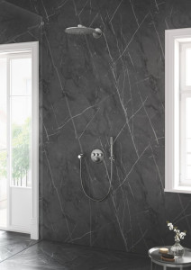 Dotaz na produkt Na splátky ještě dnesZvolte takovou termostatickou baterii, která je dostatečně flexibilní a inteligentní, a která se každý den postará o nezapomenutelnou koupel nebo sprchu. Podomítková termostatická baterie Grohtherm SmartControl v matném provedení SuperSteel se pyšní čistým, kosmopolitním designem a umožní vám ovládat několik zdrojů vody současně. Inovativní technologie SmartControl vám umožní přepínat mezi požadovanými zdroji proudu a regulovat objem vody a její teplotu pomocí otočných tlačítek. Tři ventily vám nabízí naprostou flexibilitu a volnost při plánování vaší nové sprchy. Můžete ovládat, přepínat nebo kombinovat různé režimy proudu a jejich zdroje, což je optimální do koupelen, které chcete vybavit hlavovou a ruční sprchou společně s bočními tryskami nebo vanovou výpustí. Integrovaná technologie GROHE TurboStat zabraňuje nepříjemným teplotním výkyvům. Značení GROHE EasyLogic a vroubkovaná tlačítka s vyměnitelnými symboly činí ovládání mimořádně intuitivním. Bezpečnostní pojistka GROHE SafeStop zabraňuje nastavení teploty vyšší než 38 °C, aby nebylo možné se popálit, zatímco volitelná pojistka GROHE SafeStop Plus dále zabraňuje nastavení vyšší teploty než 43 °C, což je přidaná úroveň zabezpečení. Baterie je tak dokonale vhodná do rodinných koupelen. Úsporná technologie GROHE EcoJoy vám nabídne snížený průtok vody bez jakéhokoliv kompromisu ve výkonu a požitku. Systém GROHE QuickFix zajišťuje jednoznačnou a bezproblémovou montáž této prémiové baterie. Štíhlá konstrukce zásadně usnadňuje čistění baterie, zatímco blyštivý, odolný chromový povrch GROHE StarLight zajišťuje dokonalý vzhled po celou dlouhou dobu životnosti. Tato baterie jednoznačně pozvedne úroveň vaší koupelny, a to nejen díky svému minimalistickému designu plného elegantně zaoblených tvarů. Mějte prosím na paměti, že tuto baterii je možné zapojit pouze v kombinaci s podomítkovým tělesem GROHE Rapido SmartBox (35600000).