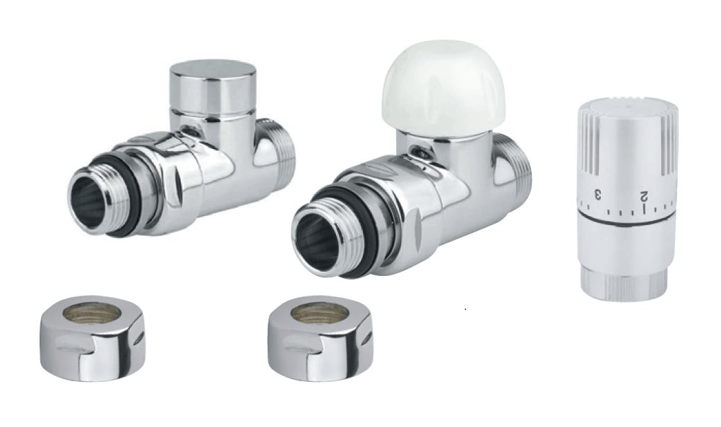 Set – přímý termostatický ventil a šroubení, povrchová úprava – bílá