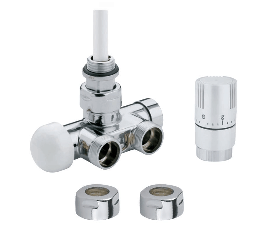 Rohový termostatický ventil a šroubení, povrchová úprava – bílá