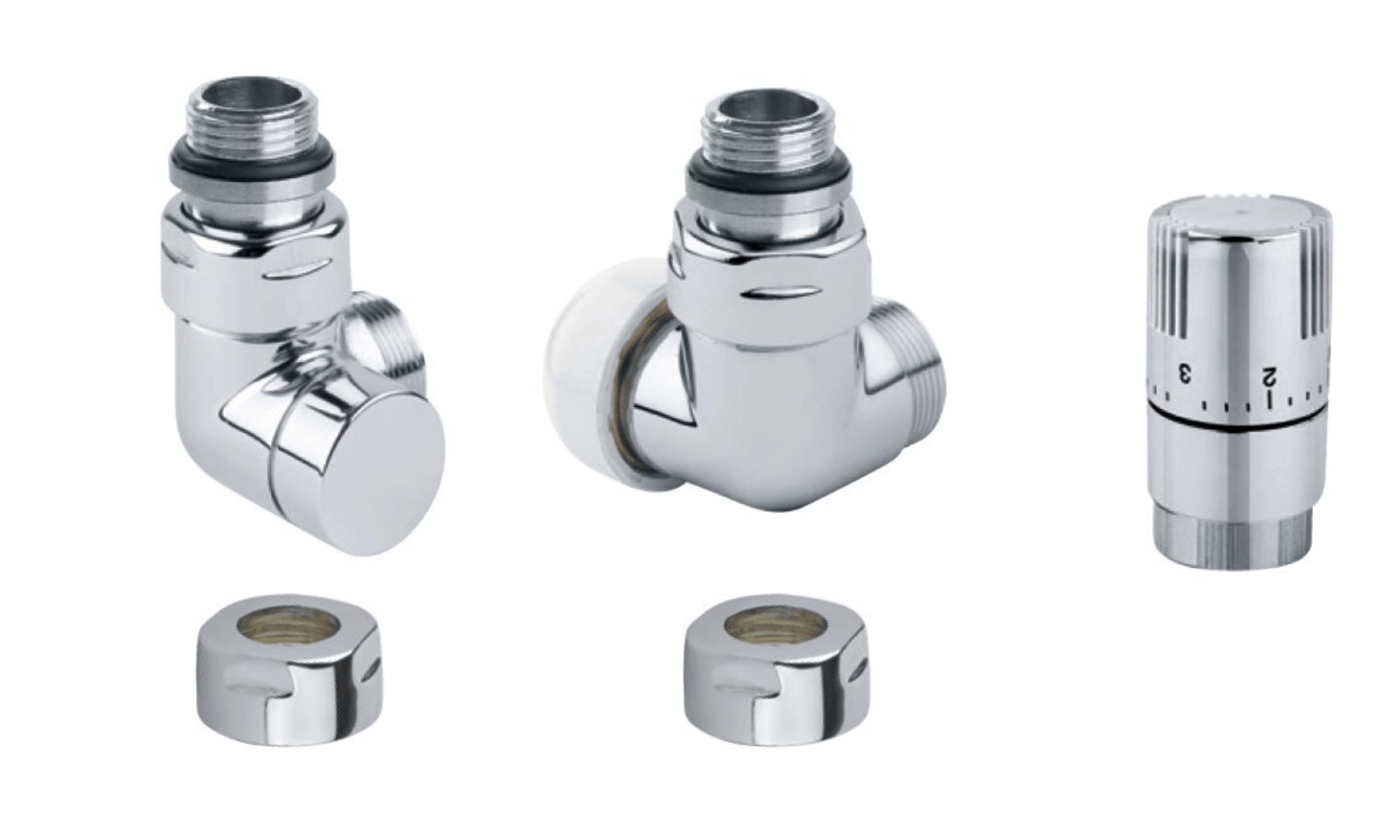 Set – úhlový termostatický ventil a šroubení, povrchová úprava – chrom