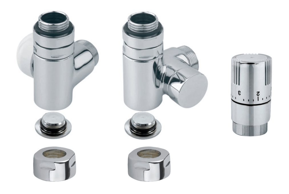 Set – úhlový termostatický ventil a šroubení, povrchová úprava – chrom