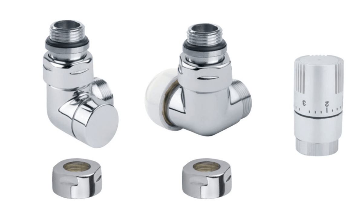 Set – úhlový termostatický ventil a šroubení, povrchová úprava – bílá