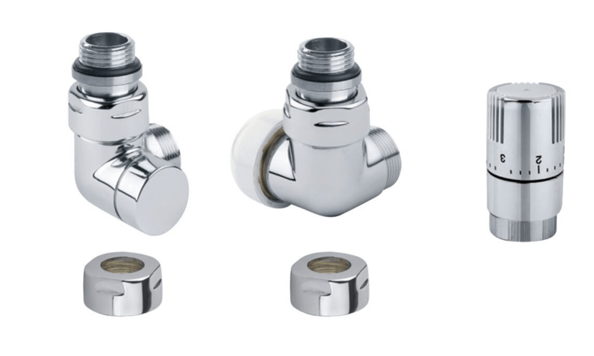 Set – úhlový termostatický ventil a šroubení, povrchová úprava – chrom