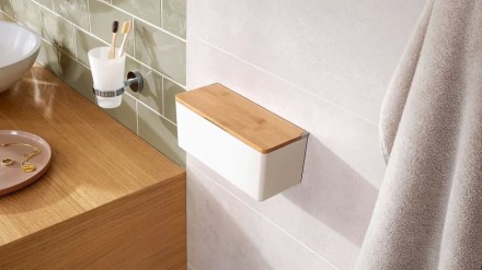 šířka 242 mmhloubka 102 mmvýška 110 mmprovedení Mmateriál plast, bambusbarva bílás přírodním bambusovým víkemmontáž lepenímlepicí proužky jsou součástí baleníPARAMETRY:Barva: bílá;ostatníDruh:...
