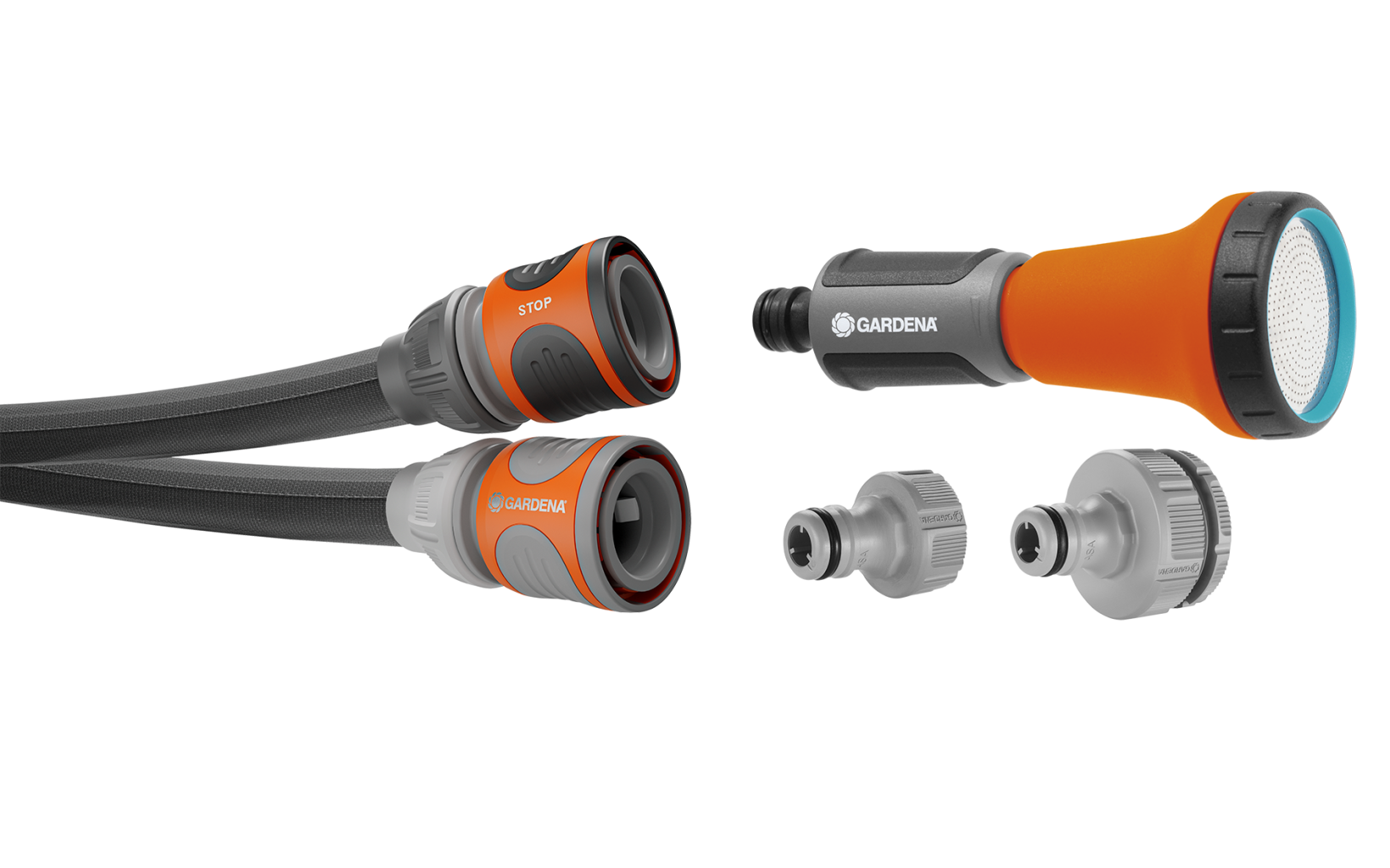 Sada se systémovými díly: Kompletní s díly Original GARDENA System, postřikovač a šroubení 18225/18220