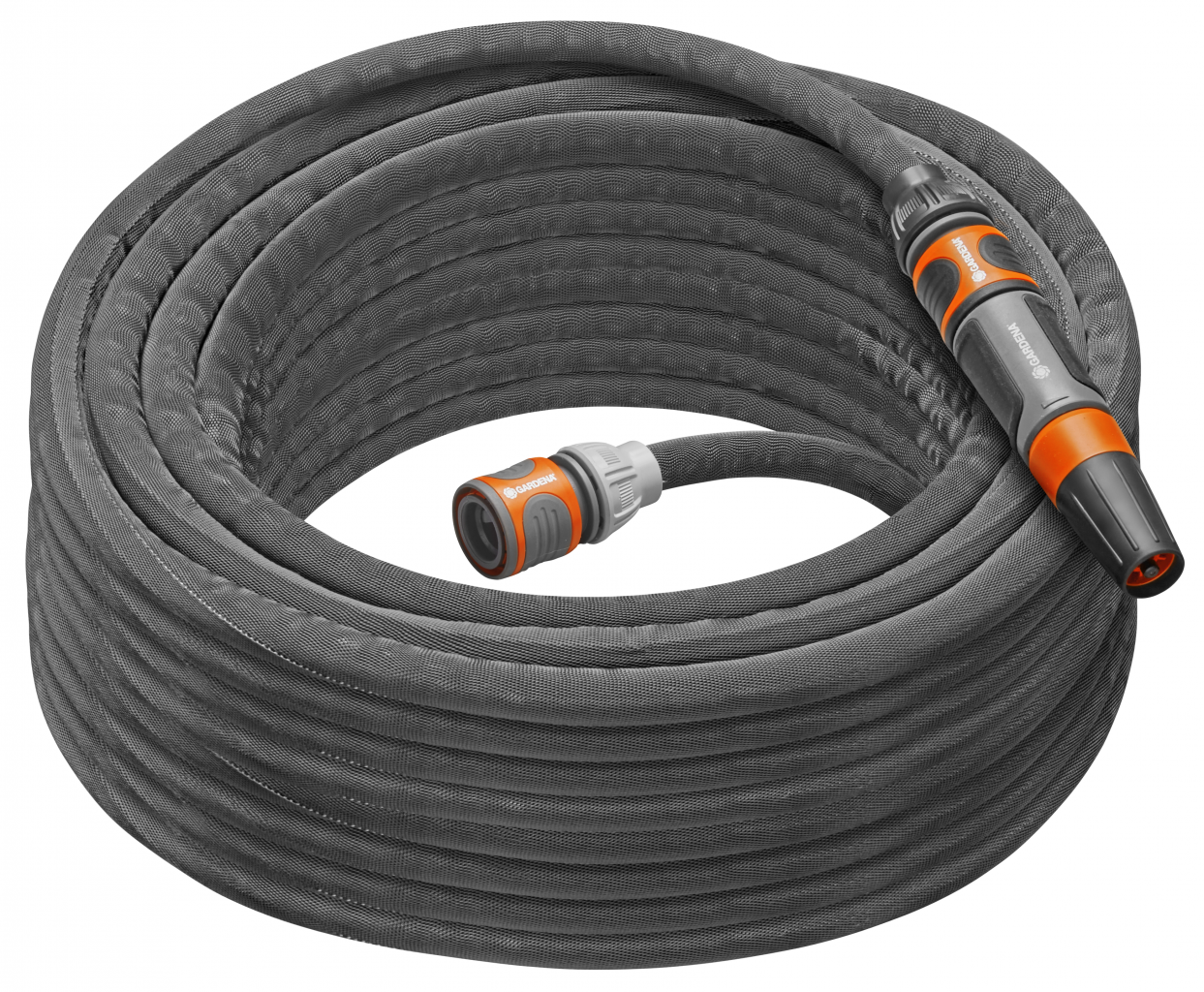 Dotaz na produkt Na splátky ještě dnesTextilní hadice Liano™ Life 20 m prodávaná jako sada značky GARDENA je připravena k okamžitému použití pro krátkodobé a střednědobé zavlažování nebo pro jednoduché úklidové práce. Sada obsahuje 20 m dlouhou hadici Liano™ Life s průměrem 13 mm (1/2") pro použití ve středně velkých zahradách, předmontované díly Original GARDENA systému: rychlospojku Liano™ a stopspojku Liano™, postřikovač a dvě šroubení na vodovodní kohoutek. Redukční spoj v jednom ze šroubení umožňuje připojit textilní hadici celkem ke třem velikostem vodovodního kohoutku. Zahradní hadice získává svůj spolehlivý výkon díky flexibilní vnitřní hadici z PVC a inovativní vnější hadici vyrobené z odolné textilní tkaniny. Při zavlažování nebo čištění je elasticita skvělou podporou, protože Liano™ Life se neláme a je méně pravděpodobné, že se zasekne na překážkách. Hadice Liano™ Life je až o 50 % lehčí než běžné PVC hadice . Díky tomu je její tahání po podlaze snadné. Díky příjemnému úchopu je manipulace pohodlná i po delší dobu. Pokud jde o prostorově úsporné skladování, Liano™ Life se díky své flexibilitě přizpůsobí dostupnému úložnému prostoru, což zjednodušuje ukládání na polici nebo v garáži. Textilní hadice disponuje tlakem, při kterém dojde k jejímu prasknutí, 22 barů. Její ochrana proti UV záření a mrazu znamená, že ji můžete nechat venku po celý rok. Navíc neobsahuje škodlivé látky, a tedy ani ftaláty (<0,1 %), kadmium, olovo a baryum (<0,1 %). Textilní hadice Liano™ Life je kvalitní produkt vyrobený v Evropě a přichází s 15letou zárukou výrobce GARDENA po registraci na adrese gardena.com/registration do 3 měsíců od jejího zakoupení. Stvořena pro extrém. Navržena pro každý den. Textilní hadice Liano™.