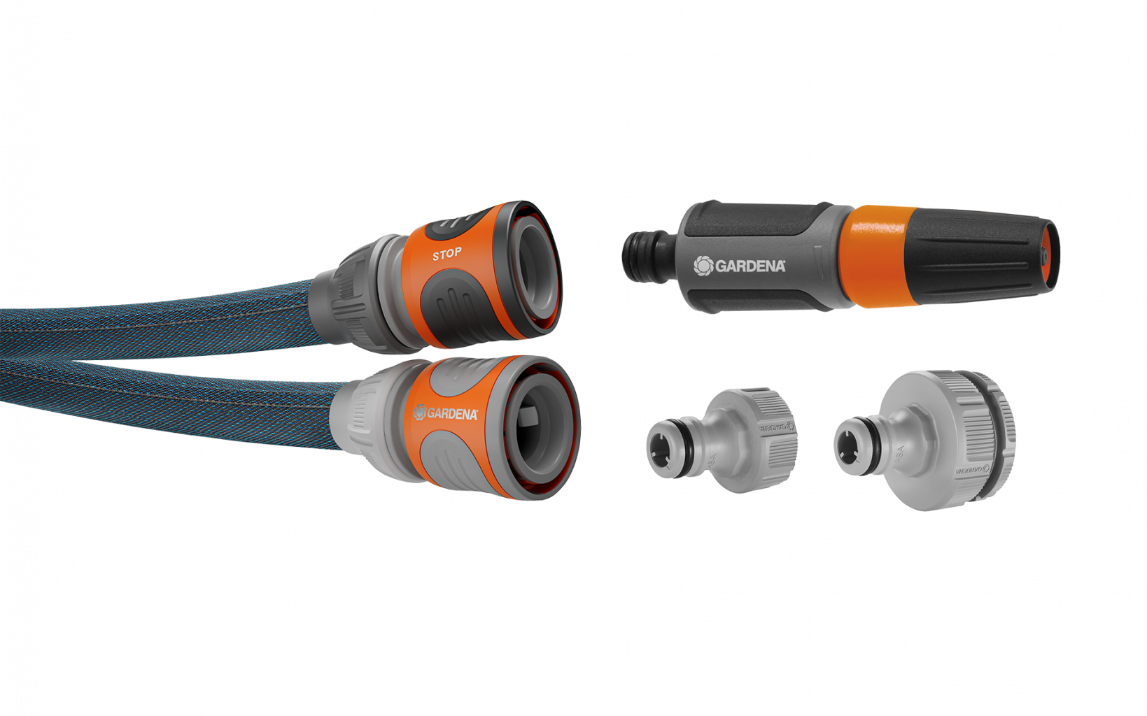 Sada se systémovými díly: Kompletní s díly Original GARDENA System, postřikovačem a šroubeními 18225/18220