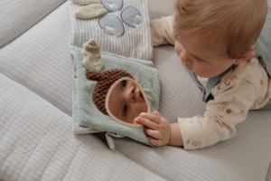 Dotaz na produktMěkká textilní knížka s krásnými motivy ze života v lese upoutá pozornost vašeho dítěte množstvím aktivit, ukrytých na jednotlivých stránkách. Ke zkoumání a prohlížení lákají šusticí i pískací stránky, různorodé textury nebo např. bezpečné zrcátko. Knížka pomáhá rozvíjet jednotlivé smysly dítěte i koordinaci ruka / oko.