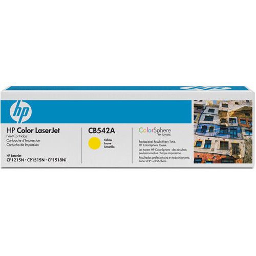 Černá tisková kazeta HP LaserJet CB542A vytváří výrazný ostrý text a ostřejší obrázky pomocí sféricky tvarovaného černobílého toneru HP. Abychom vám pomohli pracovat bez přerušení, přidali jsme do kazet inteligentní funkce vylepšující jejich spolehlivost, oznamující nedostatek spotřebního materiálu a usnadňující jeho objednávání prostřednictvím služby HP SureSupply [p1] .