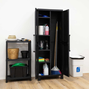 Dotaz na produkt Na splátky ještě dnesPraktická plastová dvoukřídlá skříňka GARAGE MIDI HIGH v černé barvě. ODOLNÝ RECYKLOVANÝ MATERIÁL Skříňka GARAGE MIDI HIGHje vyrobena z vysoce kvalitního recyklovaného materiálu, který zaručuje nejen dlouhou životnost, ale také podporuje naši snahu o udržitelnost a ochranu životního prostředí. Jednoduché otevírání prostřednictvím hliníkových rukojetí. SNADNÁ MONTÁŽ Díky jednoduché montáži za pomocí standardního nářadí je instalace skříňky GARAGE MIDI HIGHhračkou. Ušetříte čas i energii pro to, co je skutečně důležité - Vaše práce a Vaše projekty. JEDNODUCHÁ ÚDRŽBA S možností snadné údržby pomocí mýdlové vody a hadříku je udržování skříňky GARAGE MIDI HIGHpro pohodlný provoz snadné a nenáročné. Jednoduchý úklid podlahy pod skříní díky zvednutým nohám. To znamená, že se můžete plně soustředit na svou práci bez starostí o udržování skříně. NASTAVITELNÉ POLICE Skříňka je vybavena čtyřmi nastavitelnými policemi, z nich každá unese až 15 kg nářadí a pracovních pomůcek. Dává Vám možnost flexibilně uspořádat vnitřní prostor podle Vašich individuálních potřeb. Pravá část skříňky může být využita pro uskladnění například koštěte či jiného delšího náčiní. MAXIMÁLNÍ STABILITA S možností přišroubování skříňky ke zdi získáte ještě větší stabilitu a důvěru, že Vaše vybavení je v bezpečí a pevně uloženo i v rušných pracovních prostředích. CERTIFIKACE Skříňka GARAGE MIDI HIGHje pyšná držitelka certifikace TÜV SÜD, což znamená, že splňuje nejpřísnější mezinárodní standardy kvality, bezpečnosti a spolehlivosti. BEZPEČNÉ UZAMYKÁNÍ Možnost uzamčení skříňky GARAGE MIDI HIGHposkytuje klid a jistotu, že Vaše cenné nástroje a vybavení jsou vždy v bezpečí a pod Vaší kontrolou. Nenechte si uniknout příležitost vyzkoušet GARAGE MIDI HIGH- skříňku, která dokonale kombinuje praktičnost, dlouhou životnost a bezpečnost pro Vaši dílnu, garáž, zahradní domek nebo provozní halu.