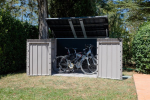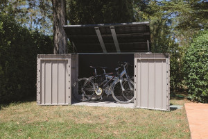Dotaz na produkt Na splátky ještě dnesPředstavujeme Vám novinku v oblasti zahradních úložných řešení - extra velkou zahradní skříň STORA WAY PLUS 3XL. Tato skříň přináší inovativní design spojený s praktičností, usnadňující uskladnění všech vašich zahradních potřeb. SNADNÉ OTEVÍRÁNÍ A PŘÍSTUP Dvoukřídlé dveře a pohodlné otevírací víko, vybavené vzduchovými vzpěrami (písty) pro lehkou manipulaci, zajišťují snadný přístup do skříně. S příjemným šikmým práhem je uložení a výměna popelnic či jiných těžších předmětů mimořádně snadná. DOSTATEK PROSTORU Skříň STORA WAY PLUS 3XL je navržena tak, aby poskytovala dostatek prostoru pro uskladnění široké škály zahradního vybavení, jako jsou kola, sekačky, nářadí a zahradní nábytek. S objemem 2 770 litrů Vám skříň poskytne dostatek místa pro uskladnění Vašich cenných nástrojů a vybavení. EKOLOGIE A ODOLNOST VŮČI POČASÍ Vyrobená z odolného recyklovaného plastu, skříň STORA WAY PLUS 3XL odolává jakékoli nepřízni počasí, včetně silného slunečního záření, bez jakýchkoli známek poškození. Možnost uzamykání zajistí bezpečné uložení vašeho majetku a přinese vám klid na mysli. SNADNÁ MONTÁŽ A ÚDRŽBA Jednoduchá montáž za pomoci běžného nářadí a dvou osob umožňuje rychlé sestavení, zatímco údržba skříně je stejně snadná díky možnosti jednoduchého čištění vodou a mýdlem. ELEGANTNÍ PROVEDENÍ Skříň STORA WAY PLUS 3XL se může pochlubit elegantním designem s imitací dřevěného povrchu, který zaručuje, že se bude vkusně hodit do každého zahradního prostředí. Barevné provedení béžových stěn a hnědého víka zajišťuje, že skříň bude esteticky příjemným a praktickým přírůstkem pro Váš venkovní prostor. Užijte si bezstarostné ukládání a přístup ke svému zahradnímu vybavení s prostornou zahradní skříní STORA WAY PLUS 3XL.
