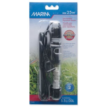 Nový design akvarijních topítek nově pod značkou MARINA. Snadné nastavení teplot. U variant s 25W a 50W provedení mini (50W i klasická velikost). Jednotlivé varianty výkonu ve W odpovídají doporučované velikosti nádrže (příklad: Marina 150W=150 litrů). Teplotní rozsah ohřevu: 20° C až 28° C.