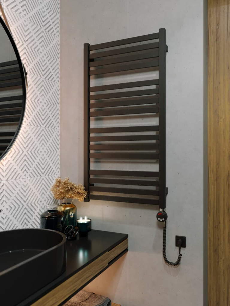PARAMETRY:Balení: 1 ksHmotnost balení: 0,562  kgDruh výrobku: topná tyč Materiál: kov Barva popisná: černá matná Barva základní: černá Orientace: na výšku lesk/mat: mat Šířka: 5,5  cmVýška: 36,6 ...