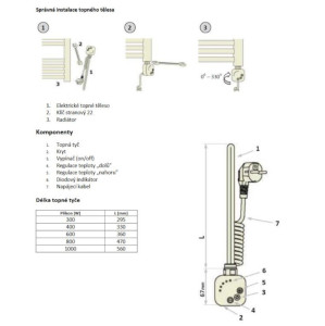 Dotaz na produkt Na splátky ještě dnesElektrické topné těleso s termostatem umožňující nastavení teploty v rozmezí 30-60° C. Dvoustupňová ochrana proti přehřátí. Funkce proti zamrznutí tekutiny. Nízká spotřeba energie během provozu díky pokročilé elektronice. 2h nastavení max. výkonu s automatickým vrácením na původní nastavení – funkce + 2h BACK – nebo automatickým vypnutím – funkce - 2h OFF. IPx54 – ochrana proti vniknutí vody. Termostat je možné otáčet o 320 ° (snadnější montáž). Není možné kombinovat s ventilem Danfoss VHX-DUO u modelů Helios, Kronos. Nelze kombinovat s horizontálními otopnými tělesy! Topná tyč je v metalicky stříbrném provedení s rovným kabelem a výkonem 600 W.