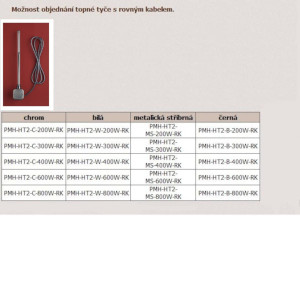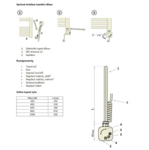 Dotaz na produkt Na splátky ještě dnesElektrické topné těleso s termostatem umožňující nastavení teploty v rozmezí 30-60° C. Dvoustupňová ochrana proti přehřátí. Funkce proti zamrznutí tekutiny. Nízká spotřeba energie během provozu díky pokročilé elektronice. 2h nastavení max. výkonu s automatickým vrácením na původní nastavení – funkce + 2h BACK – nebo automatickým vypnutím – funkce - 2h OFF. IPx54 – ochrana proti vniknutí vody. Termostat je možné otáčet o 320 ° (snadnější montáž). Není možné kombinovat s ventilem Danfoss VHX-DUO u modelů Helios, Kronos. Nelze kombinovat s horizontálními otopnými tělesy! Topná tyč je v chromovém provedení s rovným kabelem a výkonem 300 W.