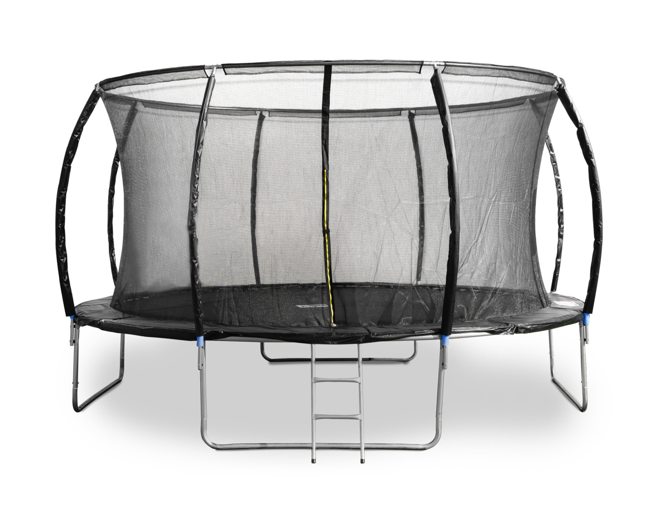 Pro pohodlný vstup na trampolínu dodáváme trampolínu G21 SpaceJump s žebříkem, který se připevní pod otvor v ochranné síti. Při skákání můžete vstup na trampolínu zajistit uzavíratelným zipem a pojistnou přezkou.
