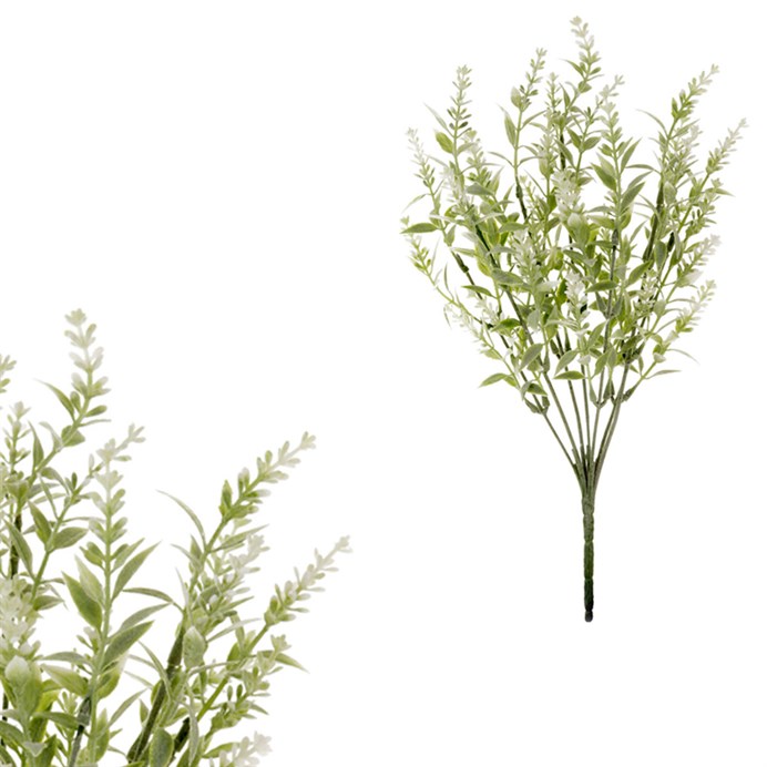 Dotaz na produktUmělá kvetoucí travina s bílými kvítky v trsu je univerzální dekorací pro tvorbu aranží či vlastní kreativní výzdoby. Svými odstíny nám připomíná jarní a letní čas, kdy se louky a pastviny barví do krásných svěžích odstínů. Použití je všestranné a svým vzhledem se hodí do nepřeberného množství kombinací s ostatními květinovými dekoracemi. Nikdy však neztratí ze své krásy a svěžího vzhledu, díky čemuž ji můžeme použít do výzdob opakovaně, nebo nechat trvale na místě, kde nám bude činit potěšení nastálo.