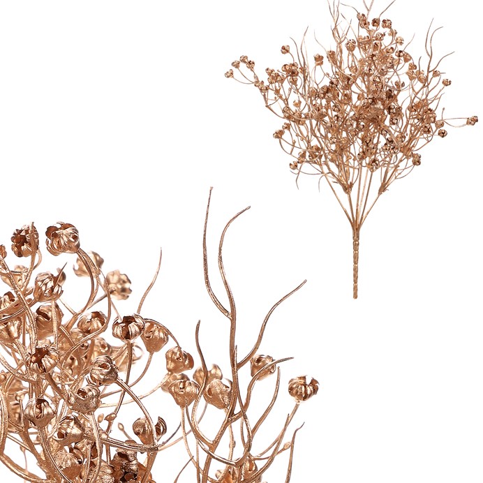 Dotaz na produktUmělý trs kvetoucí trávy v elegantní zlaté barvě přináší do interiéru nádech luxusu a originality. Vyrobený z plastu, který zajišťuje dlouhou životnost a snadnou údržbu, je vhodný jako dekorace na stůl, do vázy nebo jako součást větších aranžmá. Jemné detaily a lesklý povrch vytvářejí zajímavý vizuální efekt, který oživí každý prostor.