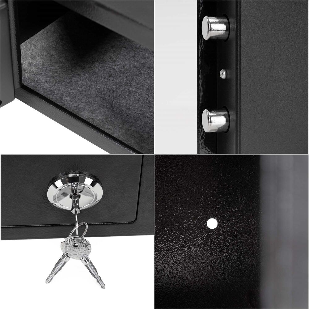 Kompaktní kovový trezor slouží k bezpečnému uložení klíčů, drobných cenností nebo dokumentů. Pevná konstrukce s práškovým nástřikem zvyšuje odolnost proti poškození, zatímco mechanický zámek se třemi klíči zajišťuje spolehlivé uzamčení. Vnitřní prostor je opatřen plstěnou podložkou a možnost montáže na zeď nebo podlahu zvyšuje úroveň zabezpečení.