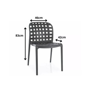 S hmotností 4,9 kg je snadno přenosná, ideální pro každodenní používání na zahradě, terase nebo balkoně. Moderní design a praktické rozměry dělají z této židle skvělý doplněk pro váš venkovní prostor. Přidejte do svého exteriéru prvek elegance a pohodlí s touto kvalitní stohovatelnou židlí.