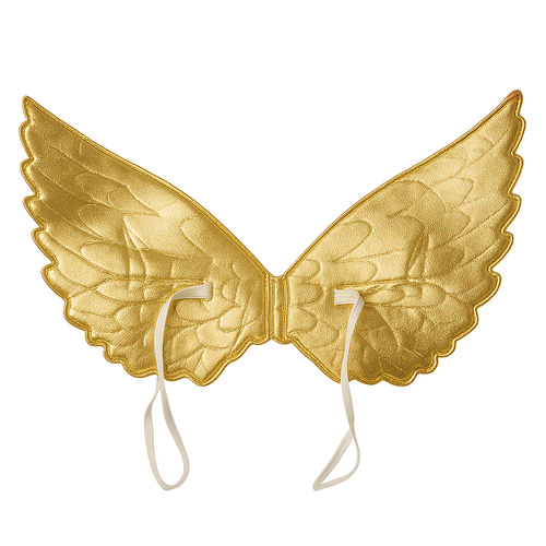 kompletní sada  – šaty, zlatá křídla a čelenka s rohem, nemusíš nic doplňovat –  Vyndáte ho z obalu a outfit je připravený na hraní nebo na ples